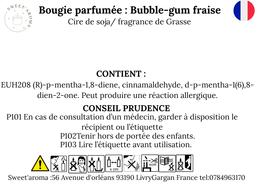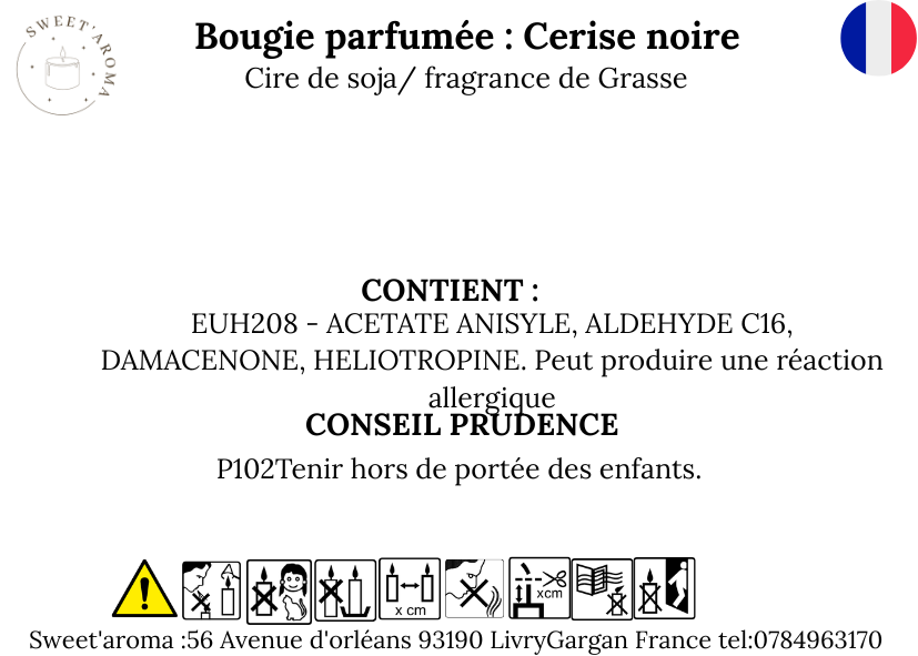 Nous utilisons uniquement de la cire de soja, du parfum de Grasse et des mèches en coton.